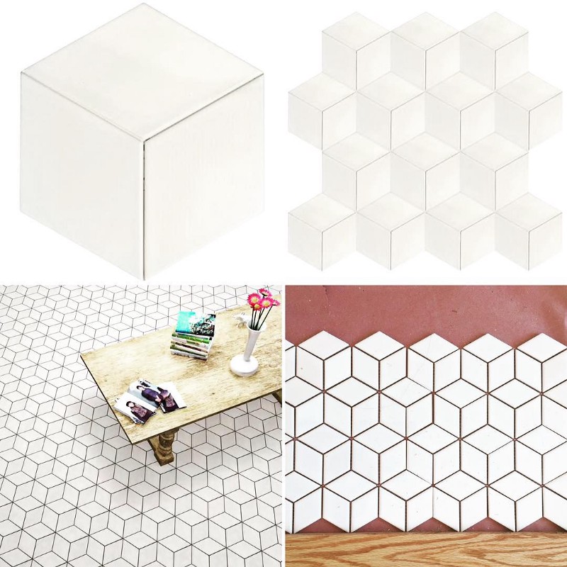 You saw that super simple and easy-to-setup tile in the guide above? Well, we didn’t go with that because we didn’t find tile we liked in that shape. So of course I fell in love with a complicated M.C. Escher-like design and our tile-guy hates me for life for it. But, our tile guy is amazing at his craft and I’m told he was super proud to lay out this complicated hearth (Our contractor however was blunt with me and said I couldn’t have picked a more complicated design — but you know what? I’m only gonna pick tile for my dreamy wood-burning stove once, and this stuff is permanent so let the art director come through please :D). We went with SomerTile 8.75×8.75-inch Concrete Cubic Big Ben Porcelain in white with light grey grout: